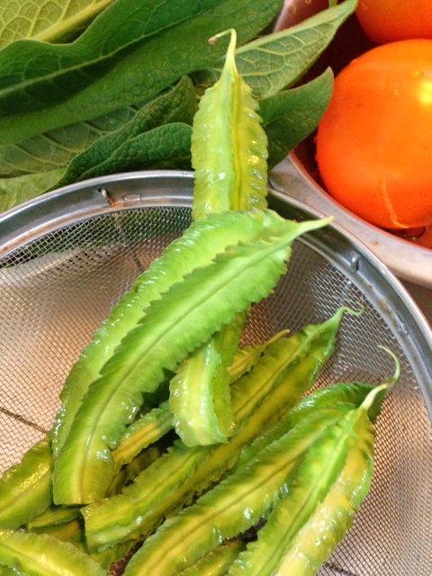 新しいもの好きな母は、今年から四角豆(しかくまめ)を育て始めて、今日が初収穫だというので天ぷらにして食べました。ホワイトゴーヤや真っ黒なスイカなど、変り種の野菜を色々と作っては、近所や友達に振る舞っているようです。