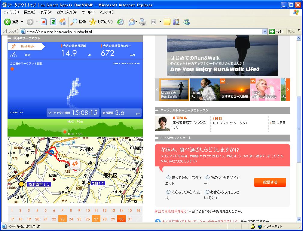 今月から使い始めました「au Smart Sports Run&Walk」、ケータイを使ってランニングやウォーキングをサポートしてくれる、auのサービスです。