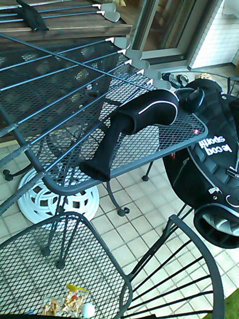 試しに少し素振りをしてみました。7番アイアンを5回ほど振って違和感がなかったので、次にドライバーを軽く3回振ったら、ちょっと腰が痛くなってきたので素振り中止(泣)。