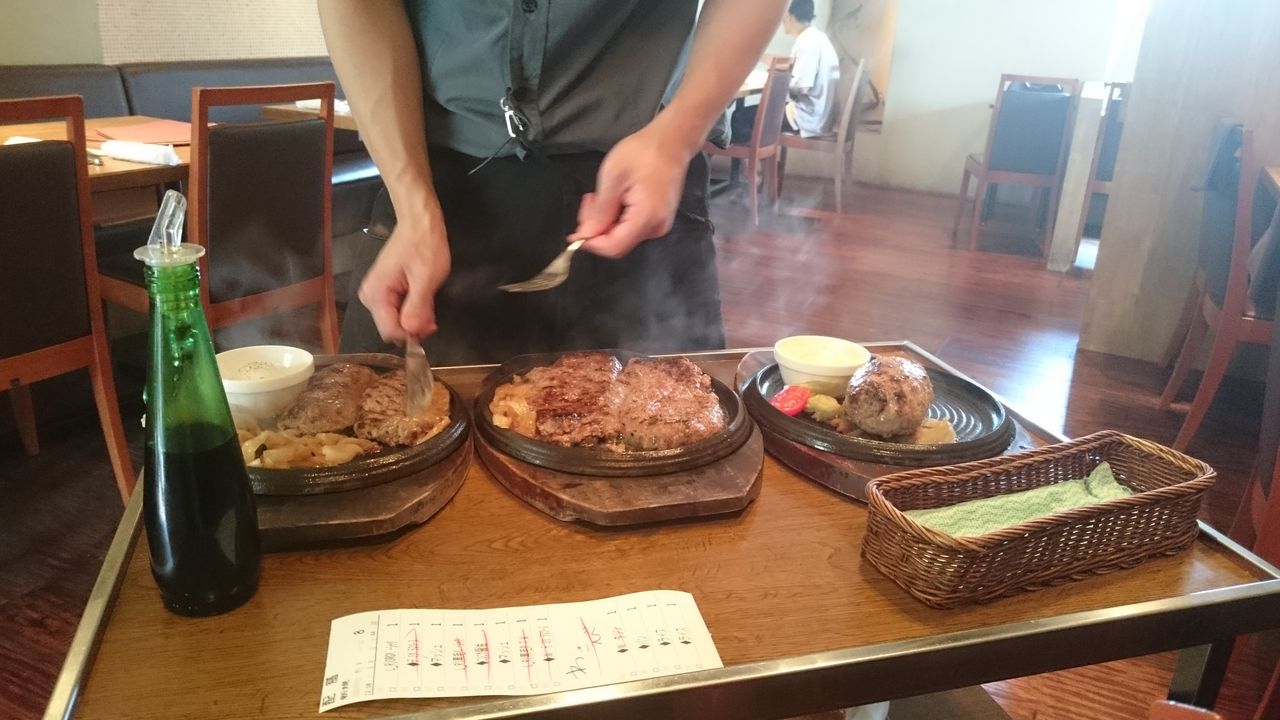 ハンバーグランチは、オージービーフの「オリジナルハンバーグ」と、脂多め黒毛和牛の「黒毛和牛ハンバーグランチ」の2種類。今日はジューシーなハンバーグを食べてみたかったので、「黒毛和牛ハンバーグランチ360g」を食べました。妻は「オリジナルハンバーグ240g」。