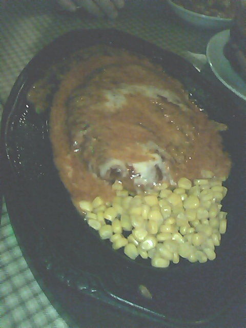 チリコンカン(チリビーンズ)やトルティーヤ料理(名前忘れました)などのサイドオーダーも注文し、コロナビールで楽しみました。ステーキとハンバーグはライスとポテトと飲み物のセットなので、3人ともお腹いっぱい食べられました。チーズハンバーグが一番オススメですね。