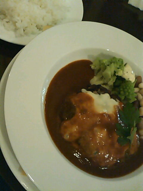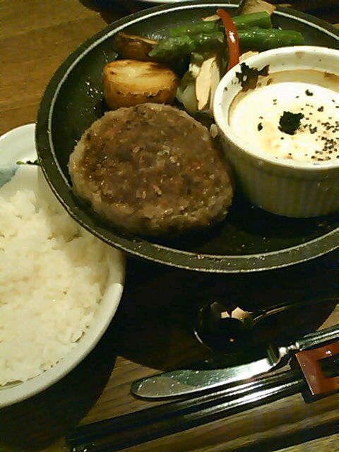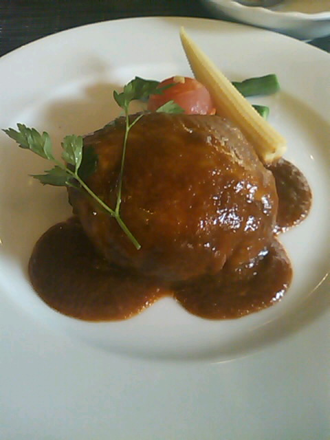 やっと来たハンバーグ、見た目は良いのですが、少々ボリュームに欠ける感じ。。一口食べてみると、それはとても柔らかくジューシーで、ソースも美味しい!よく見ると、ボールのように丸く厚みのあるハンバーグで、女性ならお腹一杯になるでしょう。