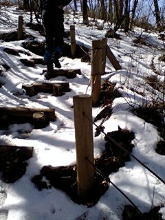 その後、一丁平までの山道は、泥の川を歩いている感じ。。さらに小仏峠までは、解け始めた雪道。。スパッツとシューズはドロドロです(泣)。